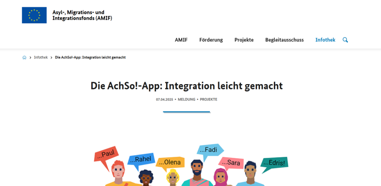 Unser Projekt wird auf der offiziellen Website des Asyl-, Migrations- und Integrationsfonds (AMIF) vorgestellt.